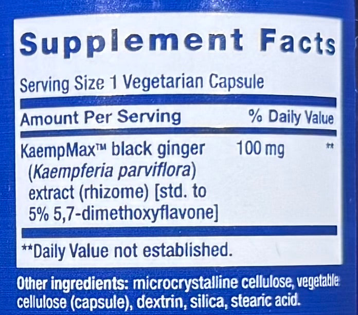 In an eight-week randomized, double-blind clinical study, K. parviflora extract promoted a healthy male sexual response as compared to placebo.2 Impressed by these results, formulators at Life Extension® set out to confirm the study's findings. In our own clinical study, subjects taking KaempMax™ K. parviflora extract standardized to 5% of the active compound 5, 7-dimethoxyflavone, for 30 days reported healthy sexual function and satisfaction.1